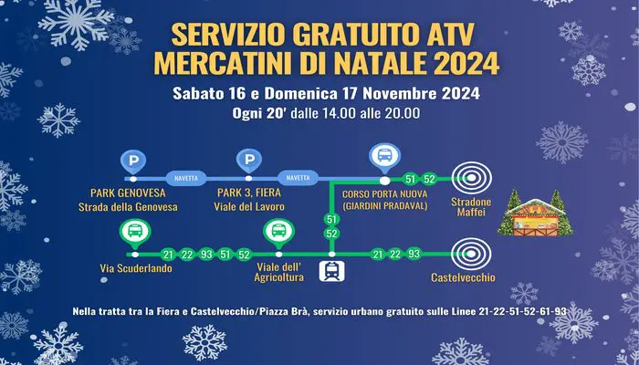 Navette gratuite e nuove linee urbane per i Mercatini di Natale a Verona: tutte le informazioni su orari e percorsi....